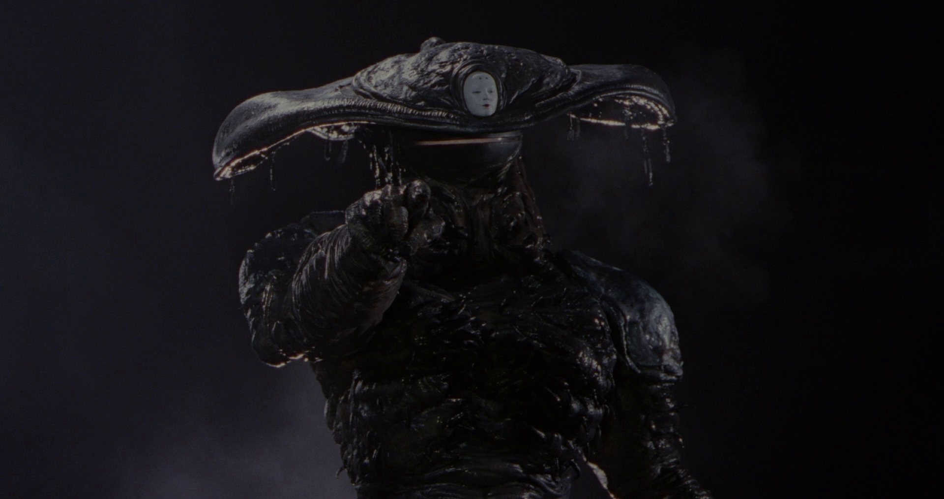 Creature designer and filmmaker Keita Amemiya wears his influences on his sleeve - his debut film Cyber Ninja melts down a host of visual language from Star Wars to Commando and transports it to a future-feudalist Japan, and his tokusatsu iterations like Kamen Rider ZO and Mechanical Violator Hakaider reconstruct ideas from Terminator, Robocop, Predator, and more. The bizarre world of Zëiram is his most fiendishly original work, a dazzling spectacle of monster action that deserves to be regarded alongside his inspirations. As drenched in hypercolor cityscapes and pastel costume design as it is in hard-edge sci-fi mecha-military technology and goopy, creature feature mania, the film exists in a constant state of rebirth and reinvention. The titular creature shapeshifts through several astonishingly brilliant forms while a cosmic bounty hunter attempts to hunt him down, atmosphere flooded with fog and flame. Transcendent in its oddities and fervently reverent of the magic of monsters, Amemiya's vision is singular and mesmerizing.