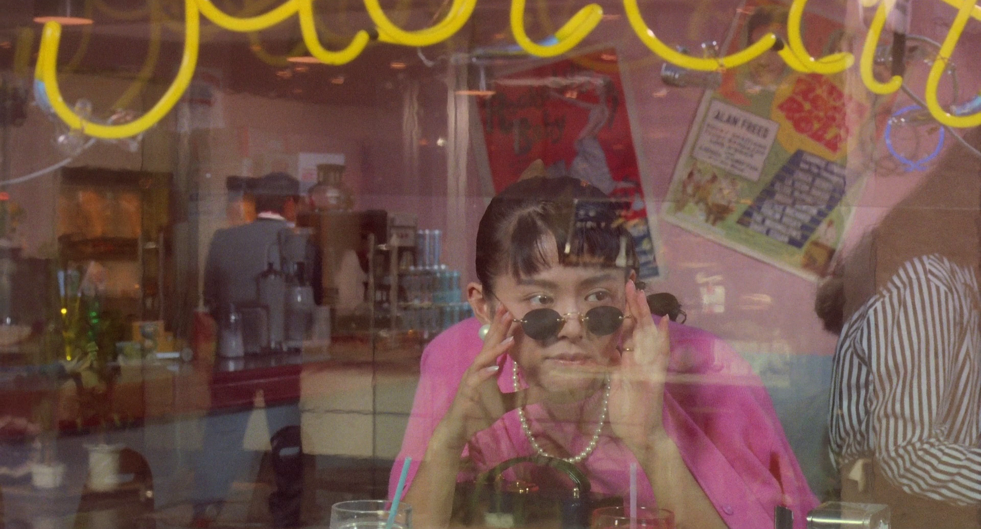 A full swing romantic comedy in city pop Tokyo, flooded with bubbly colors and fantastical whimsy. Primarily a book and magazine cover illustrator, director Makoto Wada transforms it all into an expressive pop painting, centered by future Golden Globes Best Actor Hiroyuki Sanada as a young hapless salaryman who falls in love with his new neighbor, a self-proclaimed thief and con woman determined to pull off the perfect crime. The resulting film is pure earnest charm, as romance sweeps the pair along through a series of convoluted hijinks, peppered with intermittent musical numbers and screwball sequences. Impressionist pastel cityscapes draped in lush jazz and flickering neon, swimming in twilight romanticism.