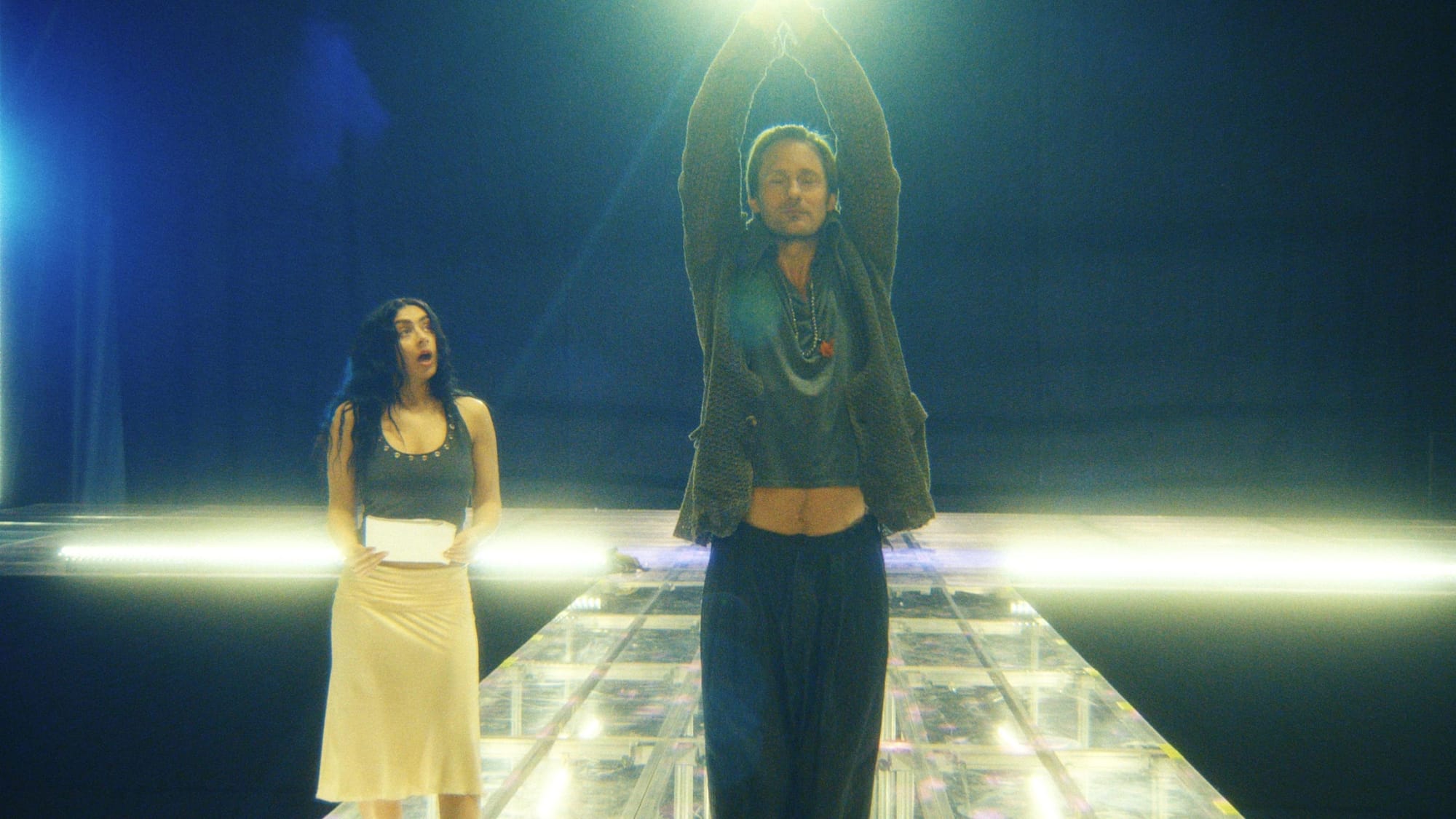 The central narrative thrust is that the label has determined the necessary course for action in continuing the staying power of Brat as a brand is to make a concert film, hiring brand friendly personality void Johannes (Alexander Skarsgård) to sand off all the rougher edges of Charli's tour design to make it all more broadly appealing. What begins as genuine creative process between Charli and creative director Celeste (Hailey Benton Gates) is quickly steamrolled by an aggressive and overwhelming amount of suggested direction from Johannes, backed by the label, becoming the fulcrum of Charli's swing towards mutually assured destruction.